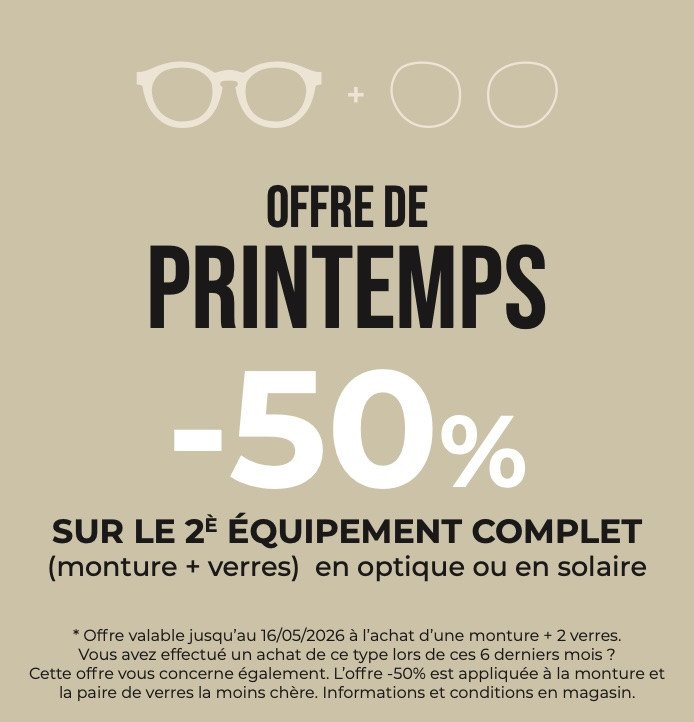 -50% sur le 2ième équipement complet (optique ou solaire)
